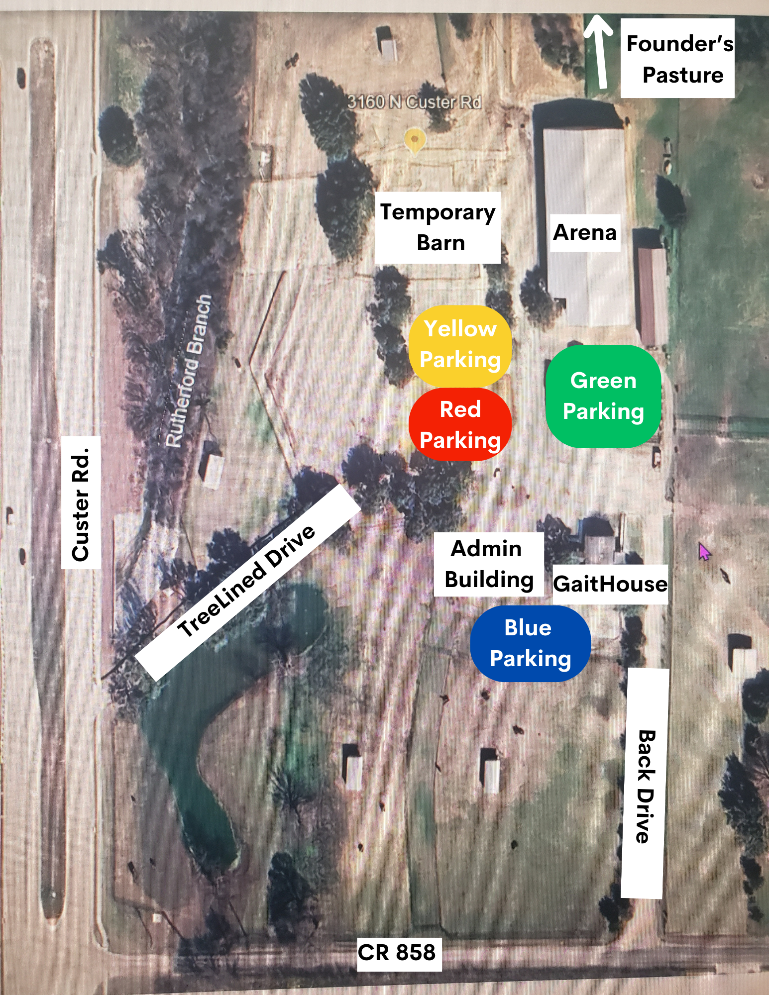 If we are unable to hold class in the covered arena due to construction, we will ride in the Founder's Pasture next door (weather permitting).