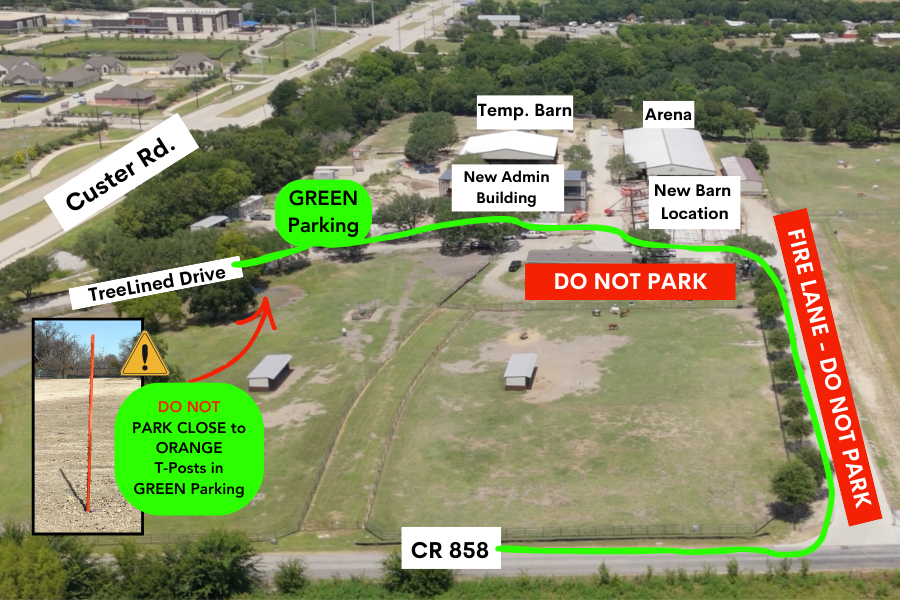 Park on concrete by Temporary Barn or behind Arena